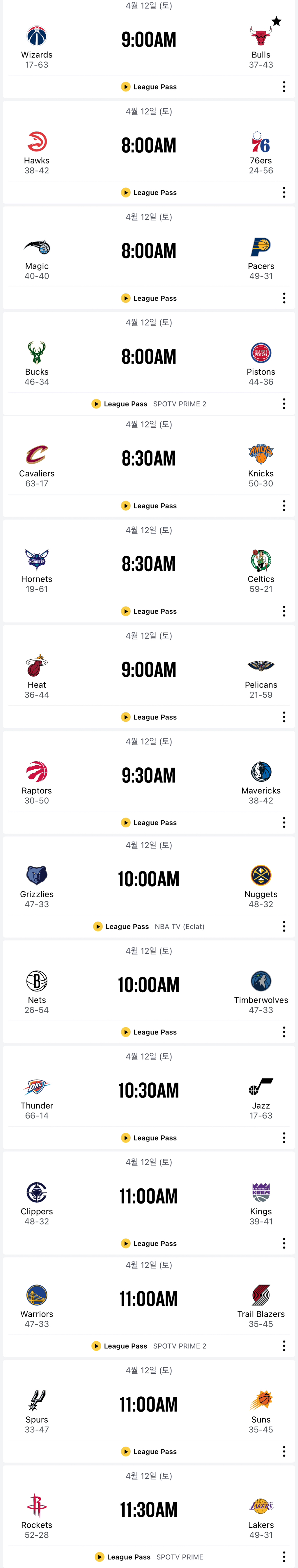 오늘자 각 컨퍼런스 순위 (25/4/11)