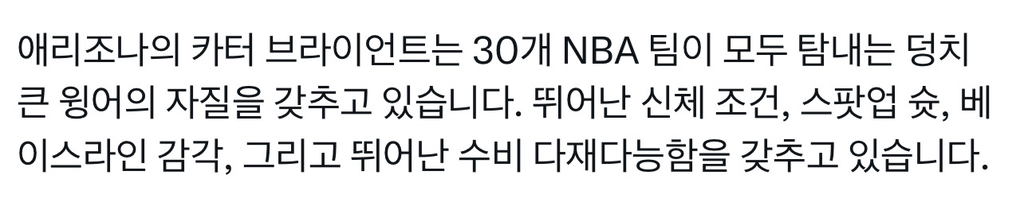카터 브라이언트는 현대 NBA 팀들이 선호하는