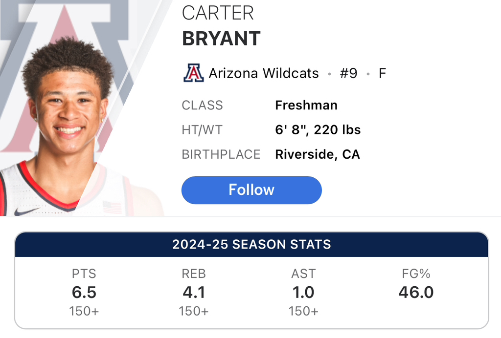 애리조나의 3 & D 윙 플레이어 카터 브라이언트