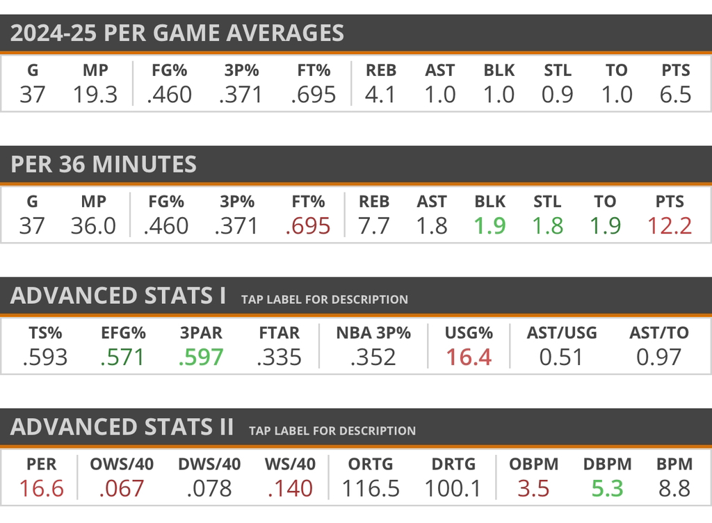 신입생 시즌 평균 6.5득점, 4.1리바운드, 1.0어시스트로