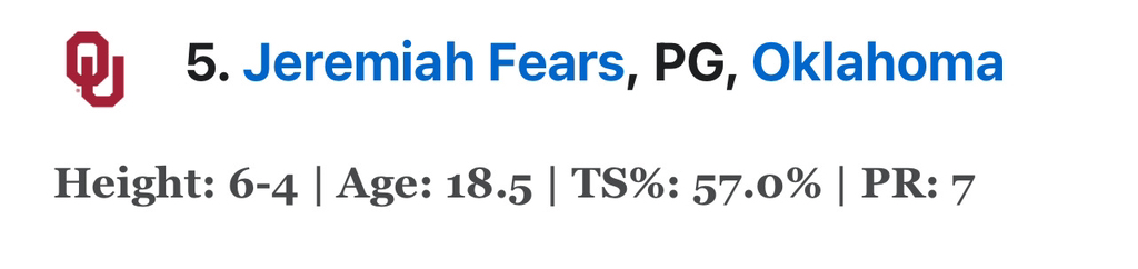 제레마이어 피어스는 체격, 스피드, 속도, 슛 창조력, 슛 메이킹, 그리고 득점 본능을 모두 갖춘 선수로, 이번 드래프트에서 가장 재능 있는 유망주 중 한 명으로 꼽힙니다. 그는 팀 동료를 위해 기회를 만들어내든, 레인에서 능숙하게 마무리하든, 자유투를 위해 달려들든, 코트 위에서 원하는 곳이라면 어디든 뛰어다닙니다. (25/4/3)