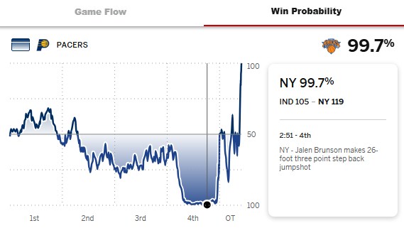 2분 51초 남은 시점 승리 확률 0.3%를 동점 연장으로 가서 승리한 인디애나 ㄷㄷㄷ