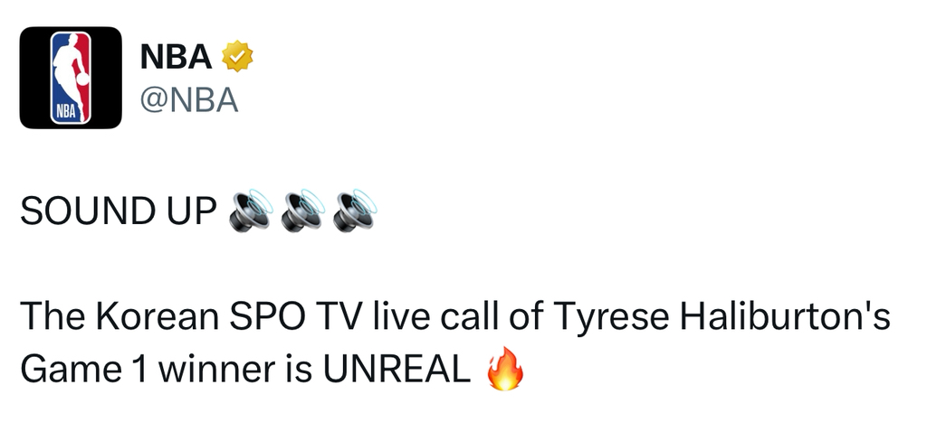 The Korean SPO TV live call of Tyrese Haliburton's Game 1 winner is UNREAL 🔥 https://t.co/heI0ELIQlu pic.twitter.com/bDs05zeEon
