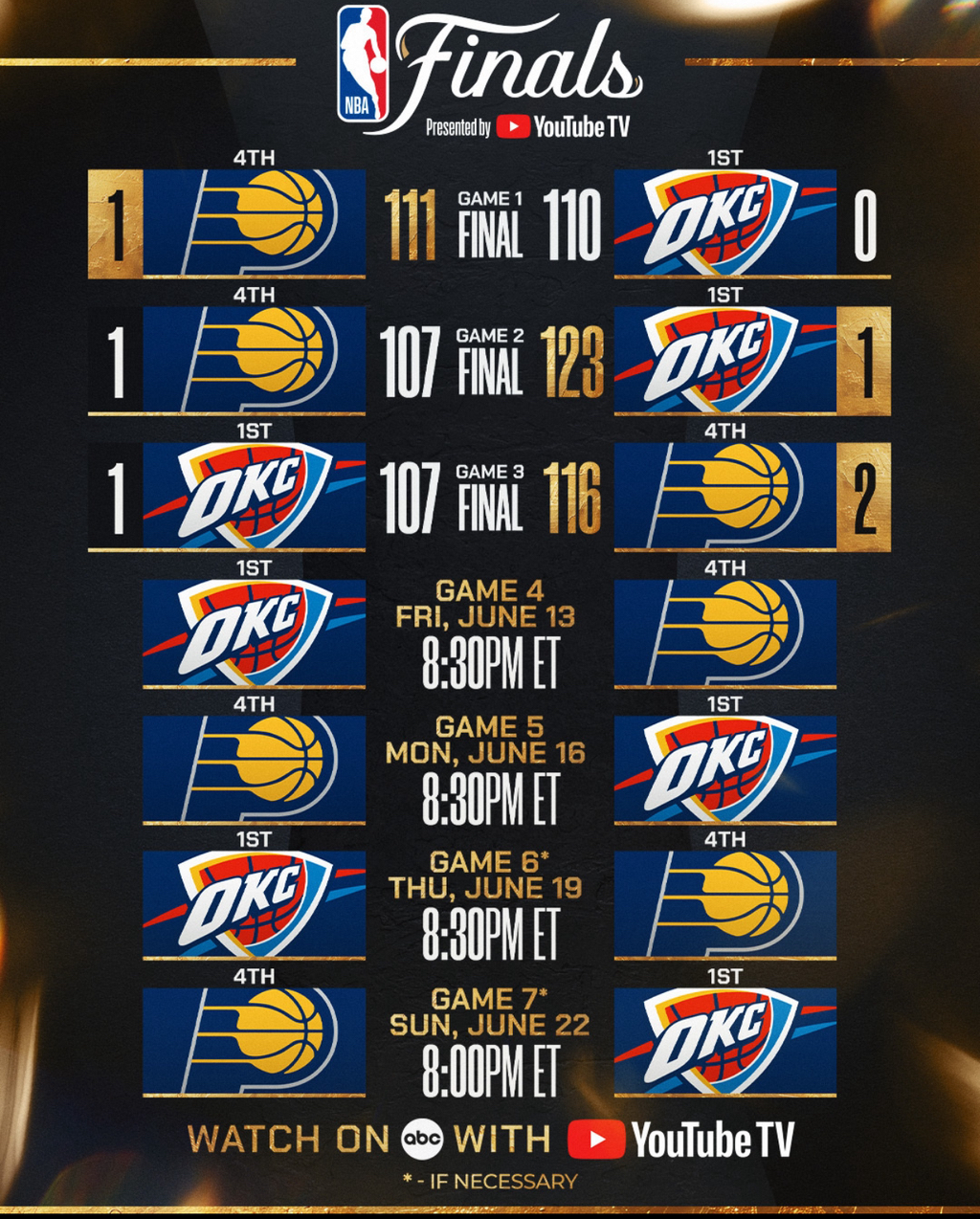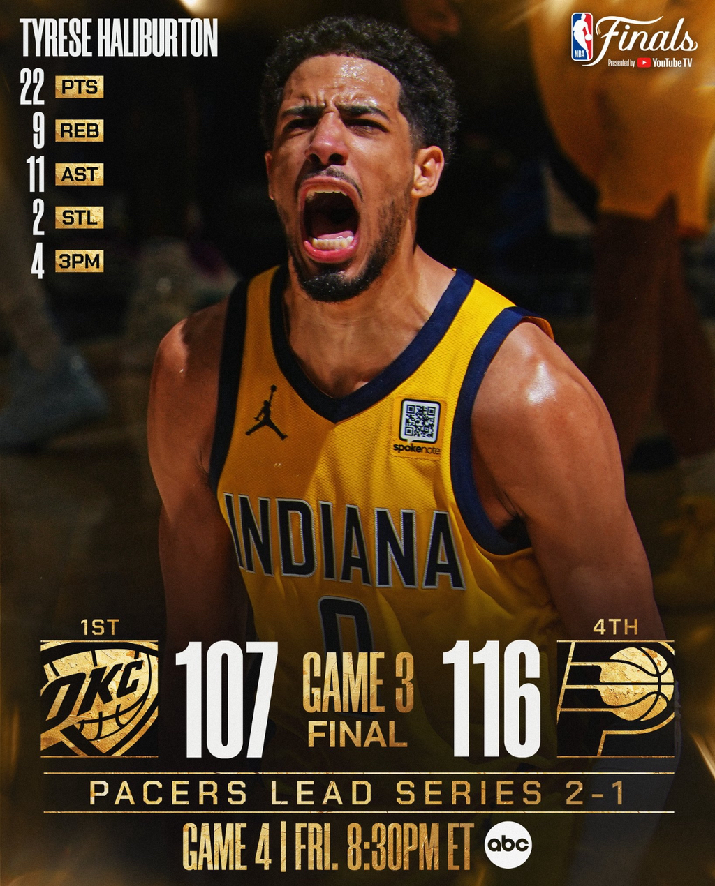 Guides the @Pacers to a 2-1 series lead in the #NBAFinals presented by @YouTubeTV. pic.twitter.com/triaern6Ru
