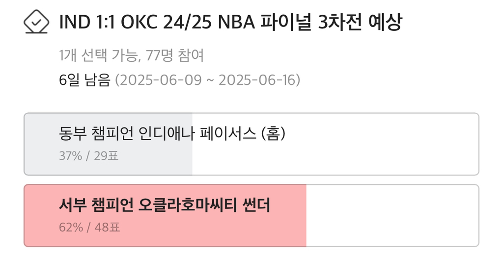 오늘의 NBA 경기 결과 (25/6/12) - 24/25 파이널 3차전, 다음 경기 예상 투표 & 일정