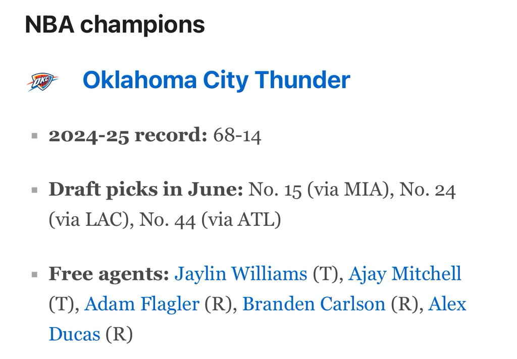 썬더는 현재 17장의 2라운드 픽도 보유 중이다.