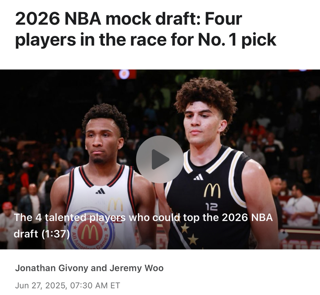 그는 이미 BYU에 등록을 마친 상태이며, 공격의 중심 역할을 맡아 전체 1순위로 지명될 자격이 있음을 증명할 기회를 얻게 될 것이다. 그 과정은 이번 주에 열리는 FIBA U19 월드컵에서 시작될지도 모른다.