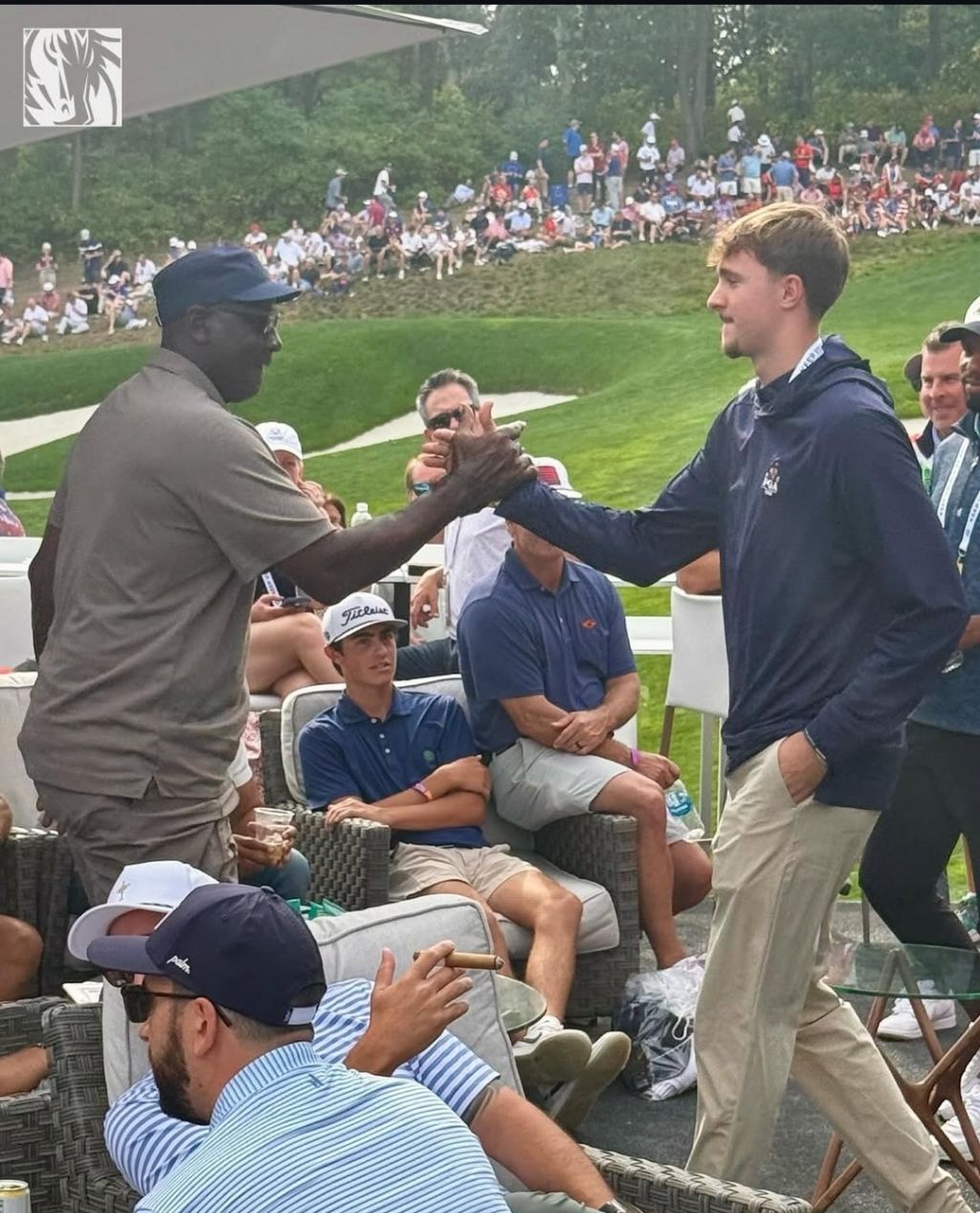 라이더컵에서 에어 조던 모델로 유명한 마이클 조던이라는 분을 만나서 가벼운 악수를 나눴다고 합니다.