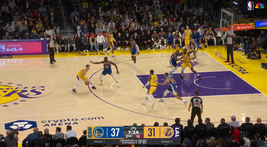 커리가 최대한 버텨주고 옆에서 도움 수비 & 로테이션으로 갈 수도 있지만 애초에 헌팅을 주지 않으려는 골스 수비 한 장면이 기억에 남아서 가져왔습니다.
