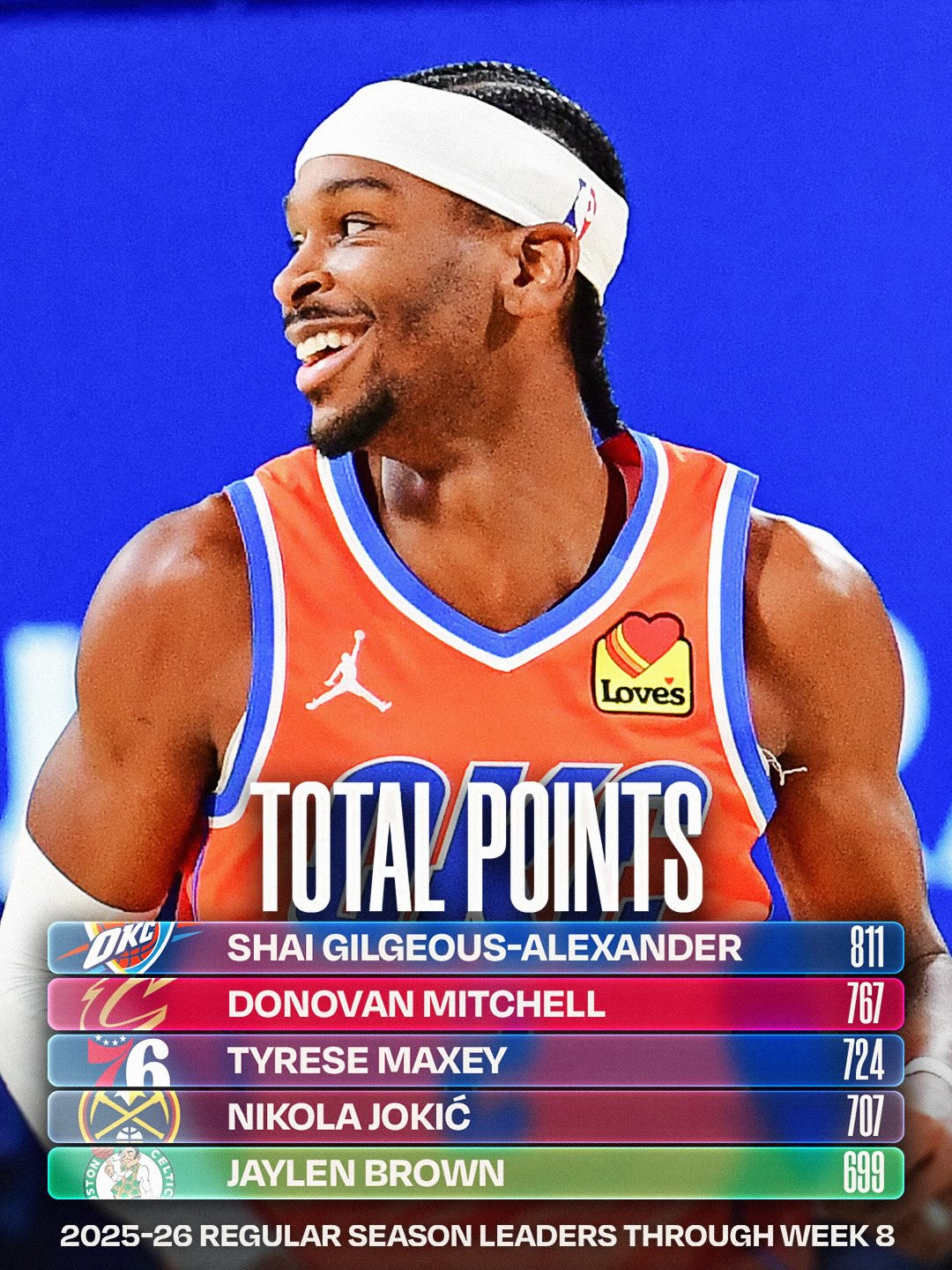 토탈 득점 1위 : 샤이 길저스-알렉산더