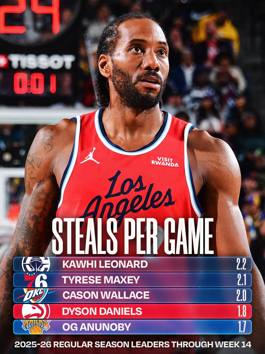 평균 스틸 1위 : 카와이 레너드