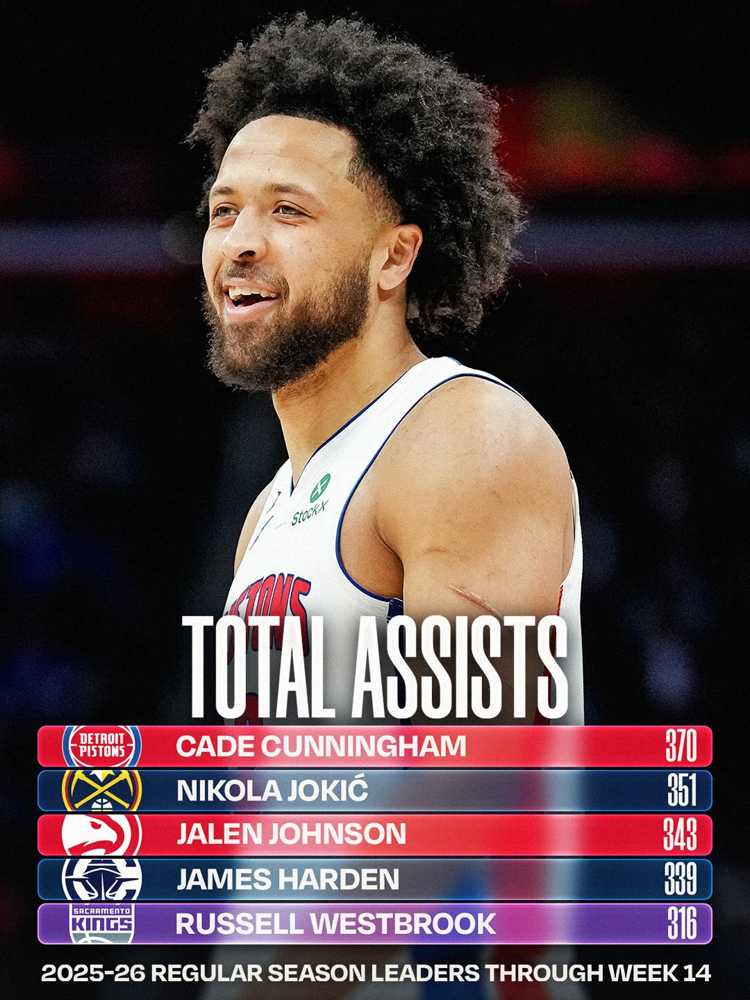 토탈 어시스트 1위 : 케이드 커닝햄