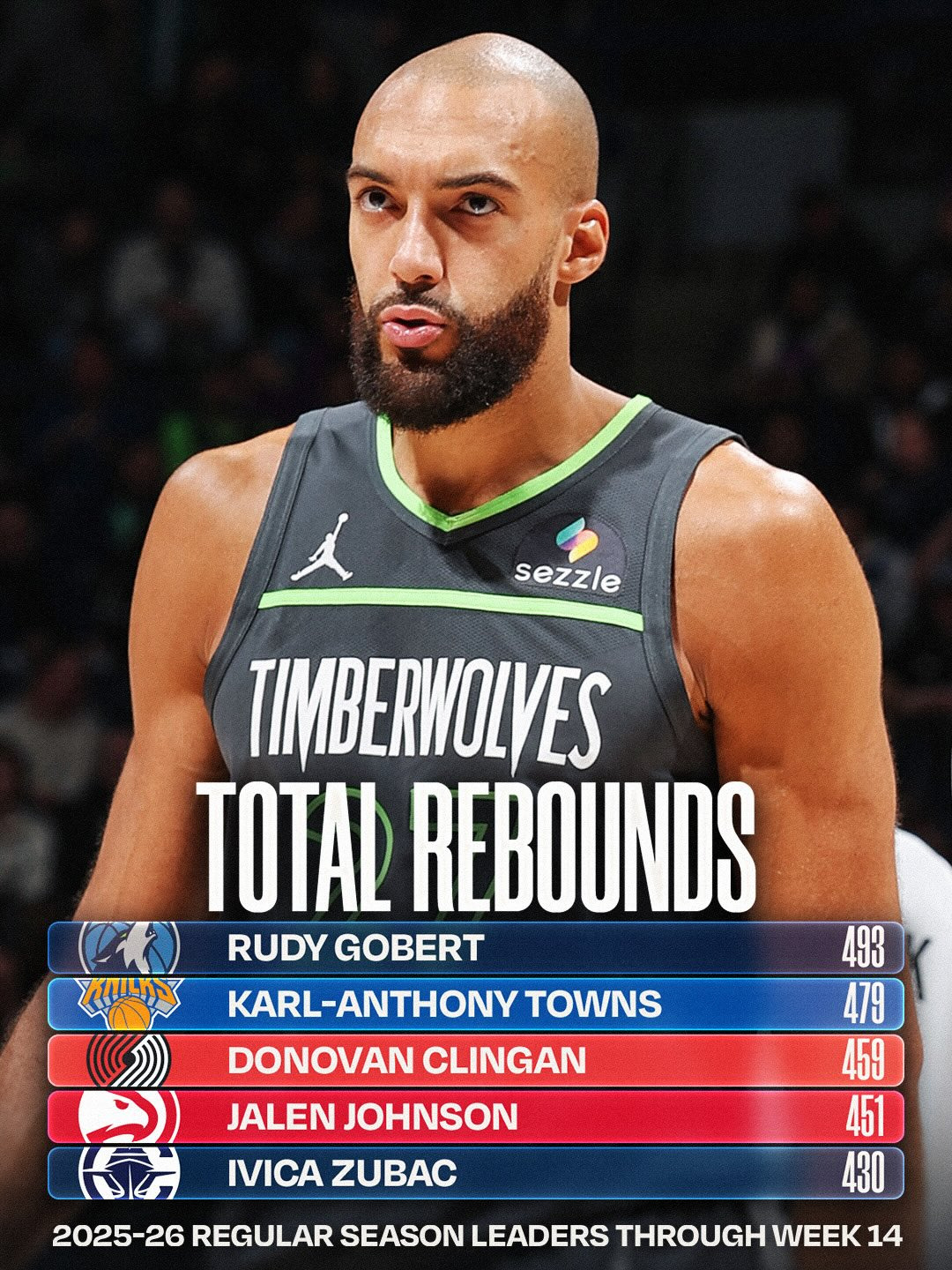 토탈 리바운드 1위 : 루디 고베어