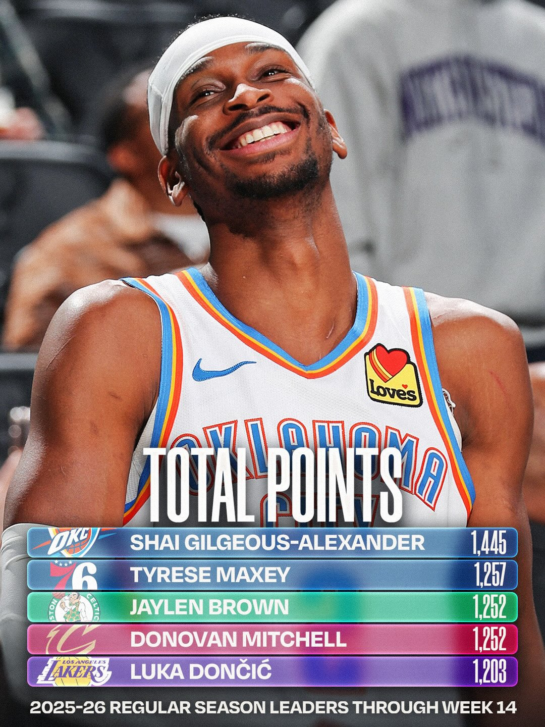 토탈 득점 1위 : 샤이 길저스-알렉산더