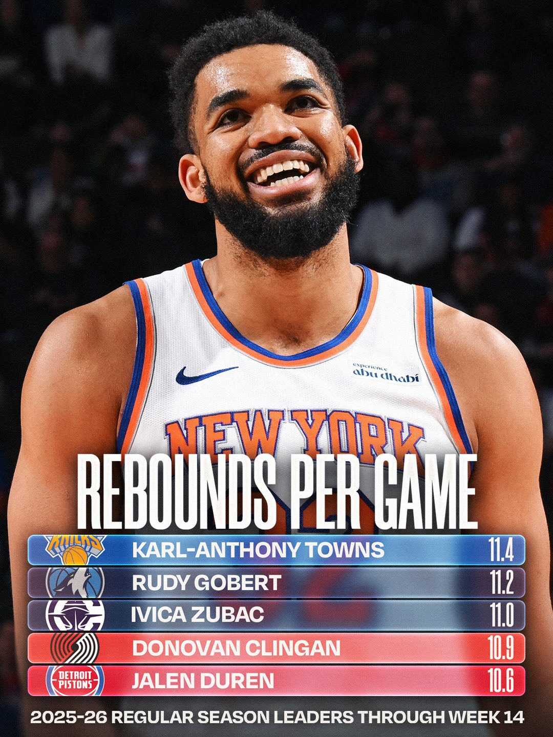 평균 리바운드 1위 : 칼-앤서니 타운스