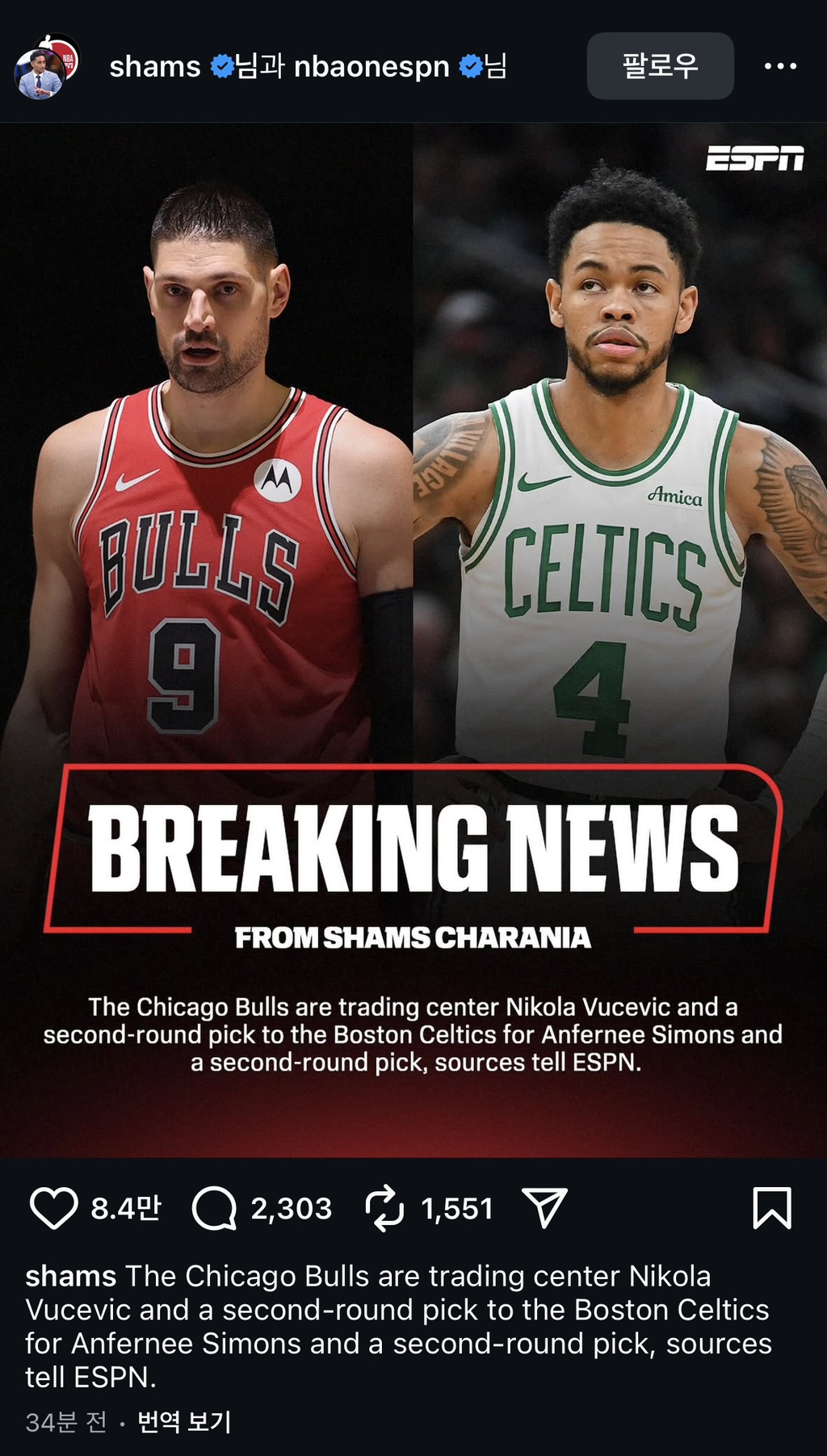 [샴즈] 시카고-보스턴 트레이드 작성자Spot-Up|작성시간26.02.04|조회수4,318 목록 댓글 19 글자크기 작게가 글자크기 크게가 시카고는 사이먼스와 2라픽보스턴은 부세비치와 2라픽을 얻습니다 다음검색 현재 게시글 추가 기능 열기 북마크 공유하기 신고 센터로 신고 댓글 댓글 19 댓글쓰기 답글쓰기 댓글 리스트 작성자airtime3 | 작성시간 26.02.04 부셰비치로 이거밖에 장사를 못해?? 작성자욱스★ | 작성시간 26.02.04 보스턴은 일 참 잘하네요. 작성자the rod-no.1 | 작성시간 26.02.04 와 보스톤은 약해진 센터진이 ㄷㄷㄷ 작성자느바인22년차 | 작성시간 26.02.04 와 보스턴 골밑 걱정 바로해결ㄷㄷ 작성자빅토르 웸반야마 | 작성시간 26.02.04 시카고의 전성기는 항상 가드가 열어줬으니까?? 댓글 전체보기