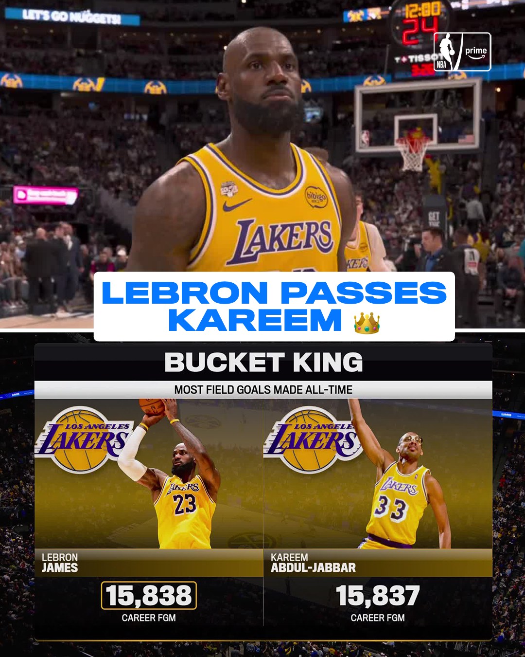 르브론 제임스가 이 득점으로 15,837개의 카림 압둘자바를 밀어내고 역대 통산 필드골 성공 개수 1위로 올라서네요