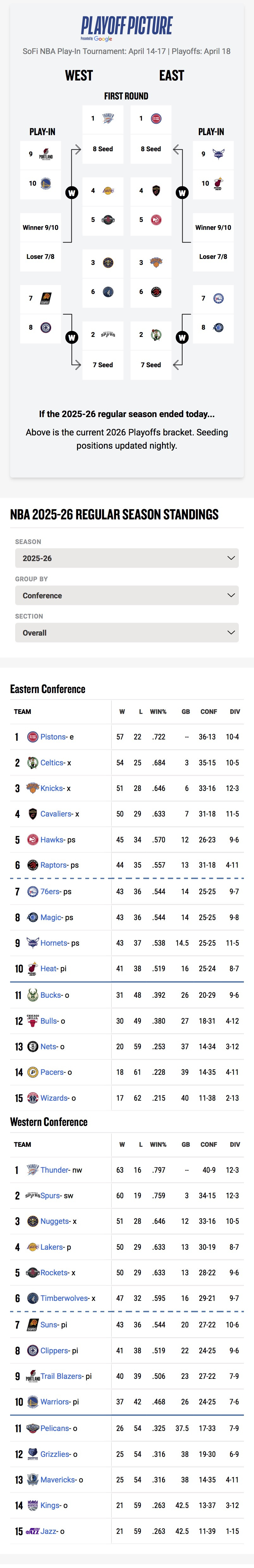 작성자BLUE DENVER 작성시간 26.04.09 서부는 덴버/랄/휴스턴 순위전만 그리 중요하지않게 남았는데, 동부는 애틀/샬럿이 분위기를 많이 탔었는데도 아직까지 5-10위가 예상 불가능이네요 ㅎㄷㄷㄷ