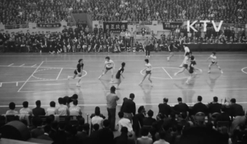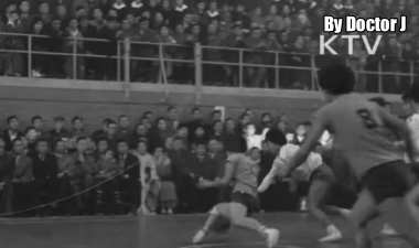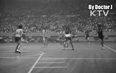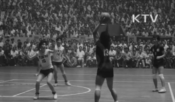일본엔 절대로 진 적이 없는 박신자가 이끈 상업은행팀. 이 경기는 당시 일본 최고의 실업농구팀인 니까미싱 팀과 상업은행 간의 경기입니다. 공을 스틸해 전방으로 찔러주는 패스를 한 선수가 한국팀의 대들보 박신자입니다.