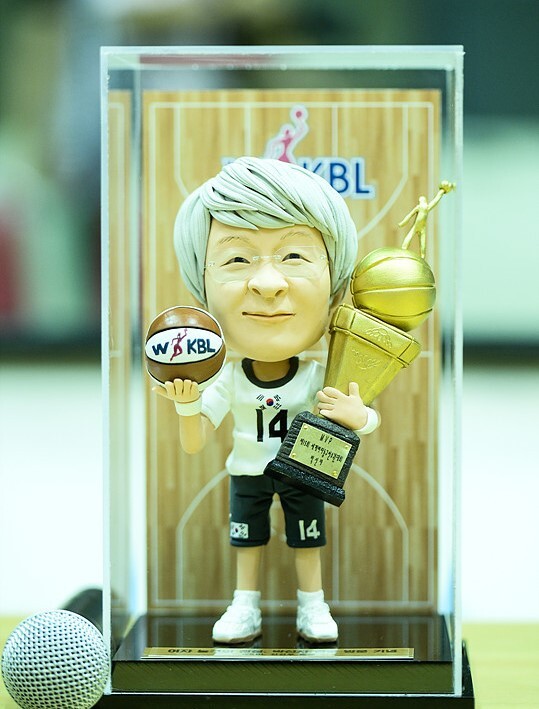 (7) 2015년부터 WKBL에서 그녀의 이름을 건 서머리그가 개최됐습니다. 우승팀과 MVP의 트로피는 특이하게도 과거 여자농구 국가대표팀의 유니폼을 입은 현재 그녀의 모습을 딴 피규어가 수여되는데, 여느 트로피에 비해 독특한 모양인지라 이에 대한 호평까지 더해지고 있습니다.