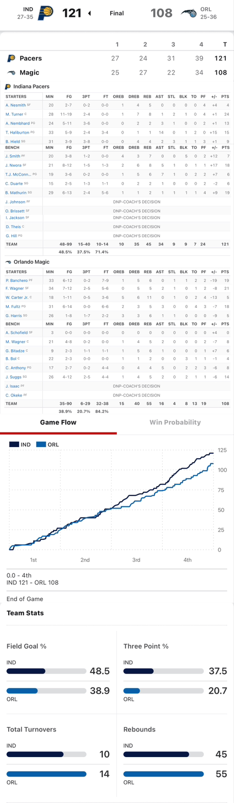 2/26 IND @ ORL 박스 스코어 (피커 게임 🤩) 작성자(CHI)불타는개고기|작성시간23.02.26|조회수233 목록 댓글 2 글자크기 작게가 글자크기 크게가 다음검색 현재 게시글 추가 기능 열기 북마크 공유하기 신고 센터로 신고 댓글 댓글 2 댓글쓰기 답글쓰기 댓글 리스트 작성자호나섹 장 | 작성시간 23.02.26 내 피커 박살... 작성자Jason-Kidd | 작성시간 23.02.26 올랜도 픽하면 지네.. 댓글 전체보기