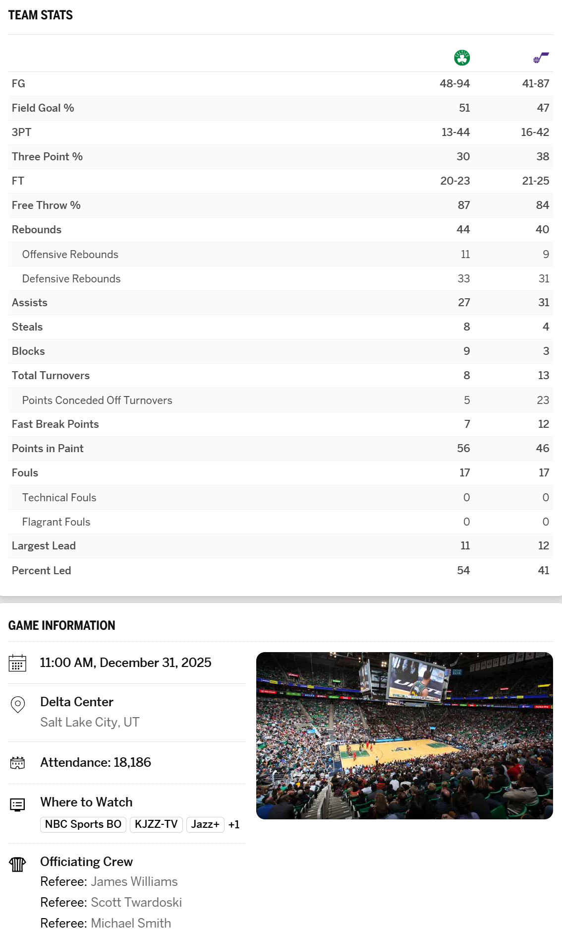 12/31 BOS @ UTA 박스스코어 작성자호나섹 장|작성시간25.12.31|조회수190 목록 댓글 2 글자크기 작게가 글자크기 크게가 다음검색 현재 게시글 추가 기능 열기 북마크 공유하기 신고 센터로 신고 댓글 댓글 2 댓글쓰기 답글쓰기 댓글 리스트 작성자jwAhn | 작성시간 25.12.31 키욘테 첨 봤는데 매력 터지네요 작성자사막의왕 | 작성시간 25.12.31 화이트 7블락 ㅋㅋ 댓글 전체보기