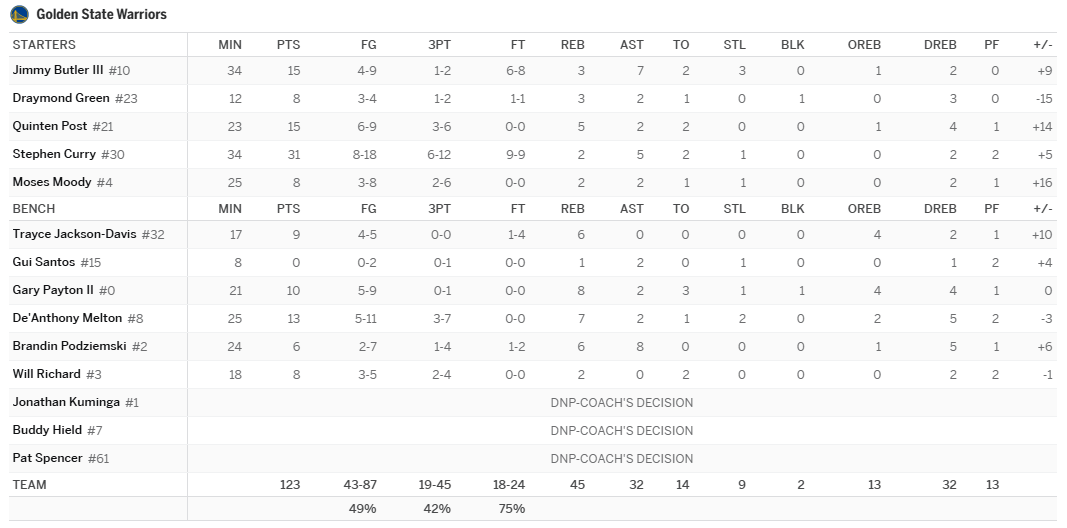 1/4 UTA @ GSW 박스스코어 작성자Melo|작성시간26.01.04|조회수390 목록 댓글 2 글자크기 작게가 글자크기 크게가 다음검색 현재 게시글 추가 기능 열기 북마크 공유하기 신고 센터로 신고 댓글 댓글 2 댓글쓰기 답글쓰기 댓글 리스트 작성자나귀 | 작성시간 26.01.04 그린 빼고하자 작성자스파이크 | 작성시간 26.01.04 쿠밍가 힐드 그린을 정리 해야다음시즌 부터 커리 은퇴전까지뭐라도 해볼텐데.. 댓글 전체보기