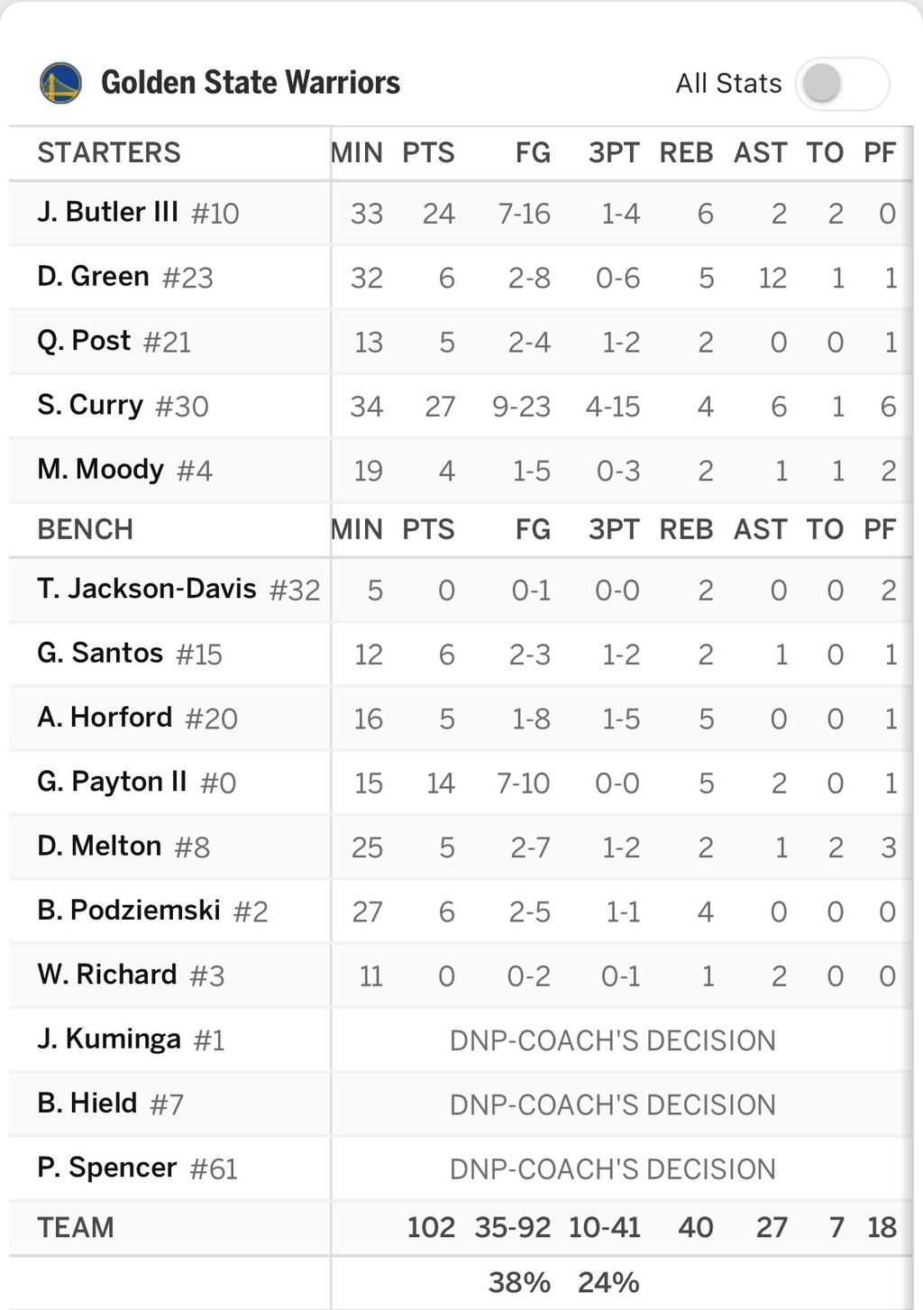 1/6 GS @ LAC 박스스코어 작성자Bunnies|작성시간26.01.06|조회수1,210 목록 댓글 3 글자크기 작게가 글자크기 크게가 다음검색 현재 게시글 추가 기능 열기 북마크 공유하기 신고 센터로 신고 댓글 댓글 3 댓글쓰기 답글쓰기 댓글 리스트 작성자Melo | 작성시간 26.01.06 승리 ㅊㅋㅊㅋ 답댓글 작성자Bunnies 작성자 본인 여부 작성자 | 작성시간 26.01.06 작성자스티브네시? | 작성시간 26.01.06 그린이 삼점 한개만 넣었어도 이기는건데… 클리퍼스 상승세가 뭔가 심상치 않네요 댓글 전체보기