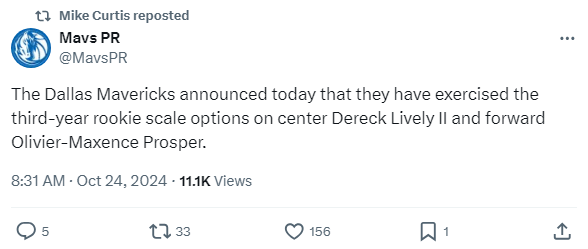 [DAL]데릭 라이블리 2세, 올리비에-막상스 프로스퍼의 3년차 옵션을 실행한 댈러스 작성자Melo|작성시간24.10.24|조회수164 목록 댓글 0 글자크기 작게가 글자크기 크게가 https://x.com/MavsPR/status/1849232119857385536 다음검색 현재 게시글 추가 기능 열기 북마크 공유하기 신고 센터로 신고 댓글 댓글 0 댓글쓰기 답글쓰기 댓글 리스트