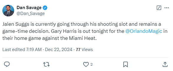 [ORL]개리 해리스 - 오늘 히트전 결장 / 제일런 석스는 웜업 후 결정 작성자Melo|작성시간24.12.22|조회수129 목록 댓글 0 글자크기 작게가 글자크기 크게가 https://x.com/Dan_Savage/status/1870594896853438531 다음검색 현재 게시글 추가 기능 열기 북마크 공유하기 신고 센터로 신고 댓글 댓글 0 댓글쓰기 답글쓰기 댓글 리스트
