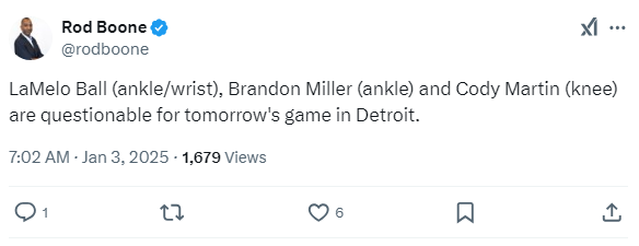 [CHA]라멜로 볼, 브랜든 밀러, 코디 마틴 - 내일 디트로이트전 Questionable 작성자Melo|작성시간25.01.03|조회수147 목록 댓글 0 글자크기 작게가 글자크기 크게가 https://x.com/rodboone/status/1874939228779610613 다음검색 현재 게시글 추가 기능 열기 북마크 공유하기 신고 센터로 신고 댓글 댓글 0 댓글쓰기 답글쓰기 댓글 리스트
