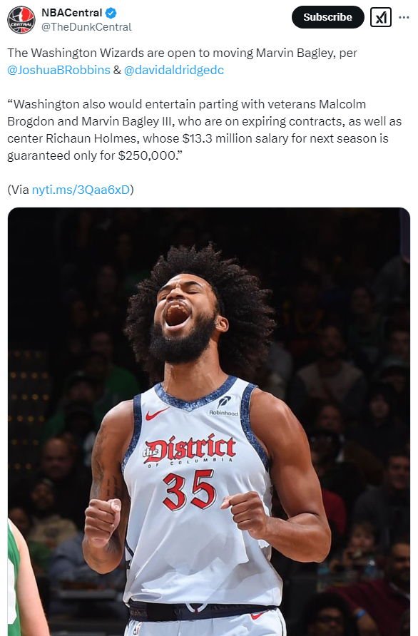 [WSH]마빈 베글리, 말콤 브록던, 리션 홈즈 트레이드 의사가 있는 워싱턴 작성자Melo|작성시간25.02.04|조회수211 목록 댓글 1 글자크기 작게가 글자크기 크게가 https://x.com/TheDunkCentral/status/1886781137621528871 다음검색 현재 게시글 추가 기능 열기 북마크 공유하기 신고 센터로 신고 댓글 댓글 1 댓글쓰기 답글쓰기 댓글 리스트 작성자the rod-no.1 | 작성시간 25.02.04 베글리는 모르겠고 홈즈는 안타깝네요 더 나은 모습을 보여줄 수 있었는데 자리가 없어서..백업 빅맨 필요한 덴버에서 안데려가려나.. 댓글 전체보기