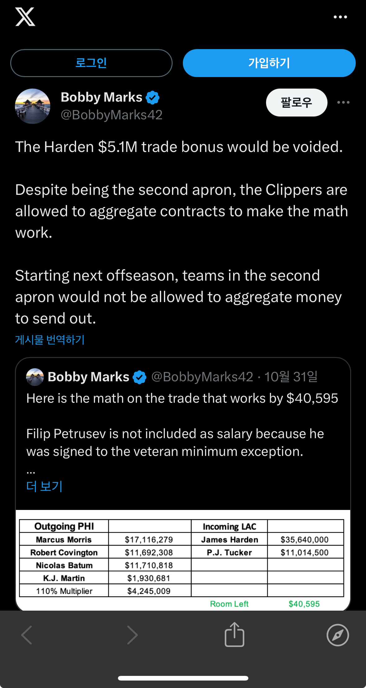 하든 : 5.1밀 보너스 포기 작성자버거킹매니아|작성시간23.11.01|조회수482 목록 댓글 1 글자크기 작게가 글자크기 크게가 https://twitter.com/BobbyMarks42/status/1719324337335943203 다음검색 현재 게시글 추가 기능 열기 북마크 공유하기 신고 센터로 신고 댓글 댓글 1 댓글쓰기 답글쓰기 댓글 리스트 작성자패쇼니스타 | 작성시간 23.11.01 트레이드 거부권 느낌인데 땡깡부린 하든이 쓰면 그것도 웃긴거죠 ㅋ 댓글 전체보기