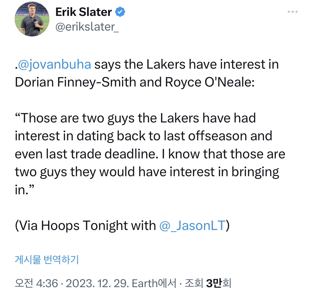 .@jovanbuha says the Lakers have interest in Dorian Finney-Smith and Royce O'Neale: “Those are two guys the Lakers have had interest in dating back to last offseason and even last trade deadline. I know that those are two guys they would have interest in