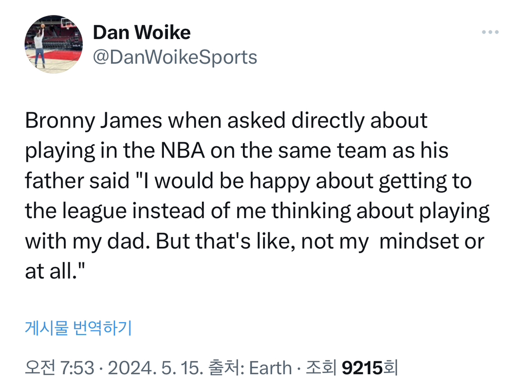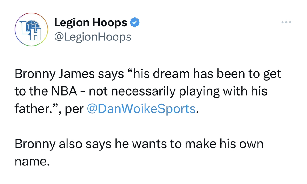 Bronny James when asked directly about playing in the NBA on the same team as his father said "I would be happy about getting to the league instead of me thinking about playing with my dad. But that's like, not my mindset or at all."