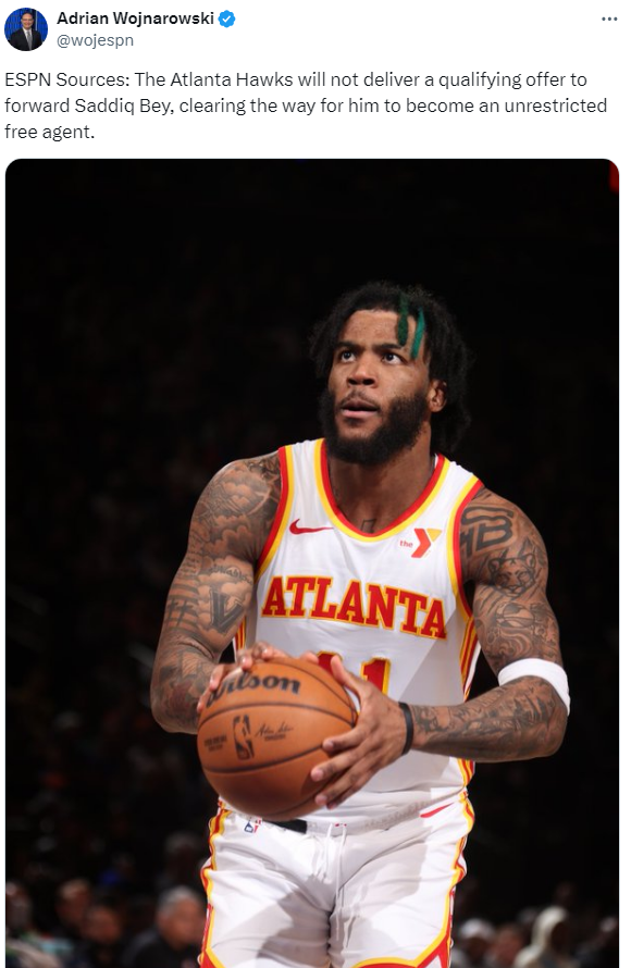 [ATL]샤딕 베이에게 퀄리파잉 오퍼를 제시하지 않을 예정인 애틀랜타 작성자Melo|작성시간24.06.30|조회수235 목록 댓글 1 글자크기 작게가 글자크기 크게가 비제한적 FA가 될 예정. ACL 부상으로 수술을 한 상태라..ㅠㅠhttps://x.com/wojespn/status/1807094658465411132 다음검색 현재 게시글 추가 기능 열기 북마크 공유하기 신고 센터로 신고 댓글 댓글 1 댓글쓰기 답글쓰기 댓글 리스트 작성자the rod-no.1 | 작성시간 24.06.30 안타깝지만....ㅠ 댓글 전체보기