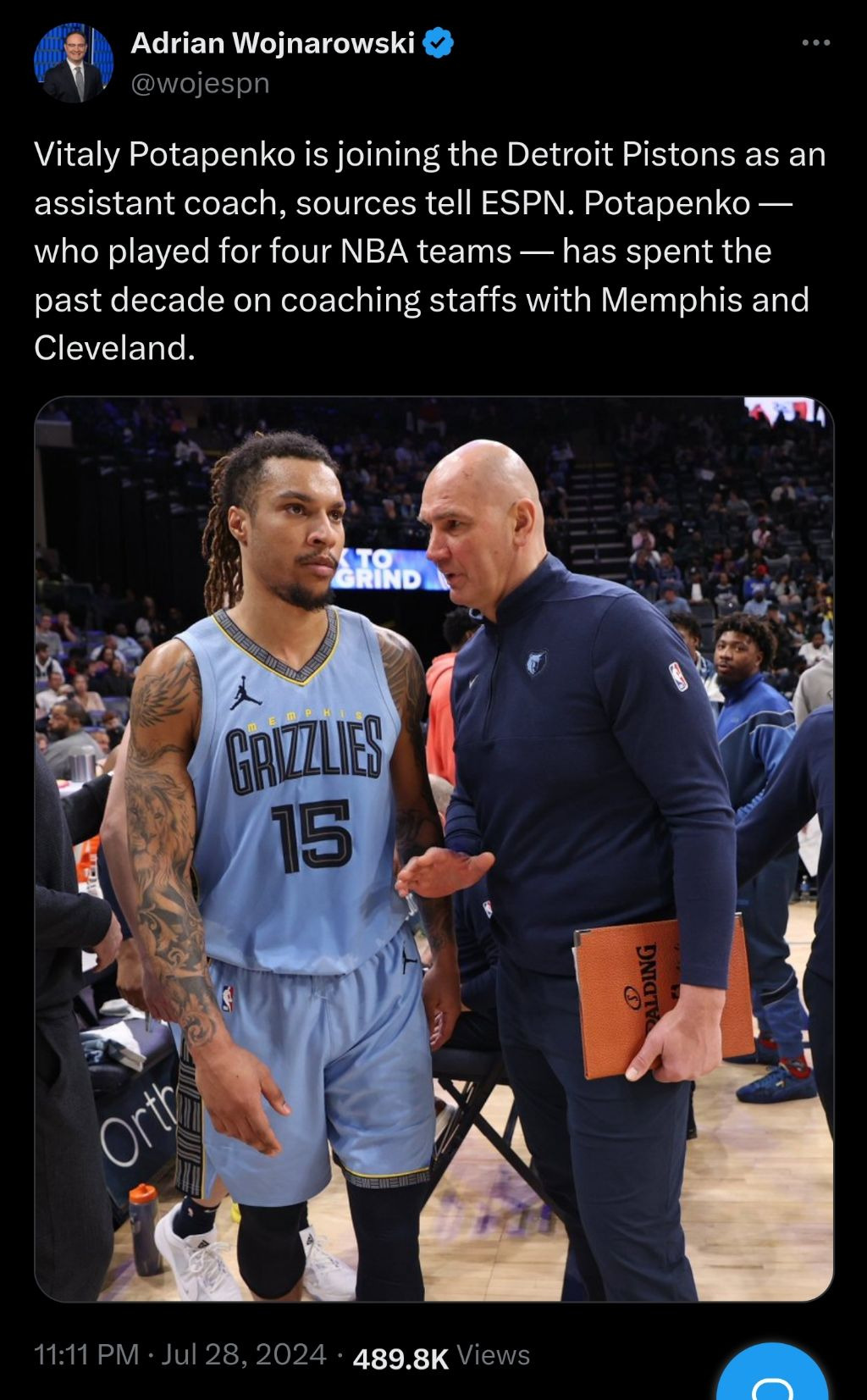 [DET]비탈리 포타펜코를 어시스턴트 코치로 고용한 디트로이트 작성자Melo|작성시간24.07.29|조회수226 목록 댓글 0 글자크기 작게가 글자크기 크게가 https://x.com/wojespn/status/1817563523649577276X의 Adrian Wojnarowski님(@wojespn)Vitaly Potapenko is joining the Detroit Pistons as an assistant coach, sources tell ESPN. Potapenko — who played for four NBA teams — has spent the past decade on coaching staffs with Memphis and Cleveland.x.com 다음검색 현재 게시글 추가 기능 열기 북마크 공유하기 신고 센터로 신고 댓글 댓글 0 댓글쓰기 답글쓰기 댓글 리스트