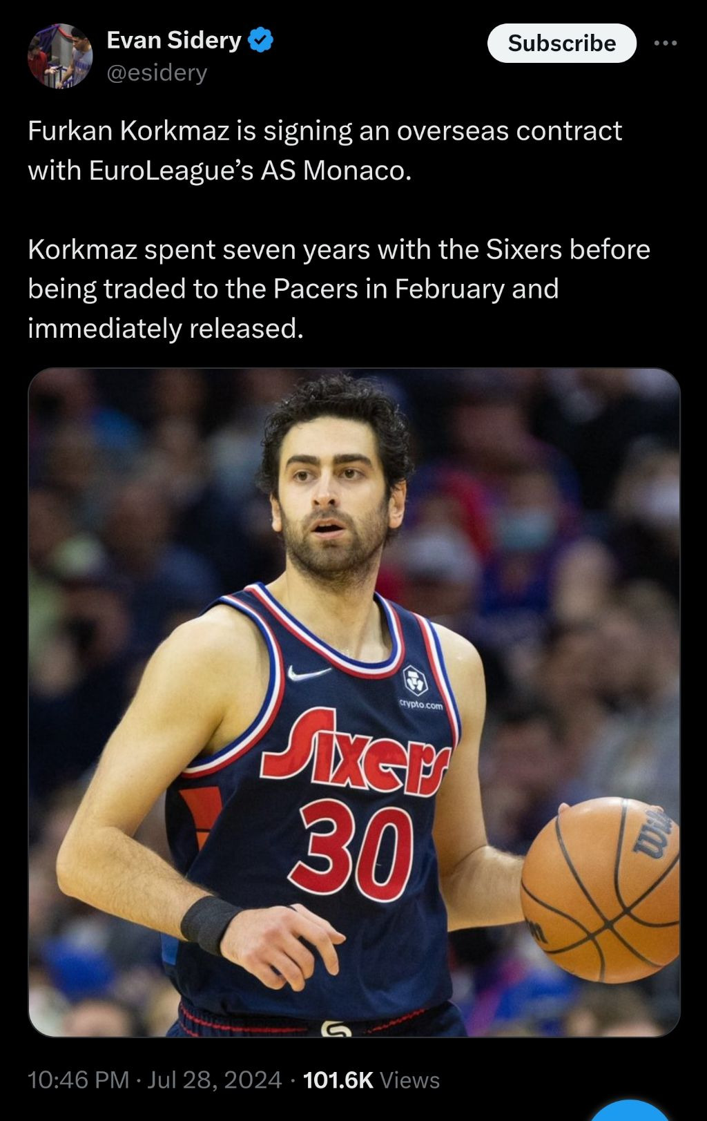 AS 모나코와 계약한 푸르칸 코크마즈 작성자Melo|작성시간24.07.29|조회수236 목록 댓글 1 글자크기 작게가 글자크기 크게가 https://x.com/esidery/status/1817557208239923289X의 Evan Sidery님(@esidery)Furkan Korkmaz is signing an overseas contract with EuroLeague’s AS Monaco. Korkmaz spent seven years with the Sixers before being traded to the Pacers in February and immediately released.x.com 다음검색 현재 게시글 추가 기능 열기 북마크 공유하기 신고 센터로 신고 댓글 댓글 1 댓글쓰기 답글쓰기 댓글 리스트 작성자second_chance | 작성시간 24.07.30 모나코에서 씹어잡수고 다시 돌아오길! 댓글 전체보기