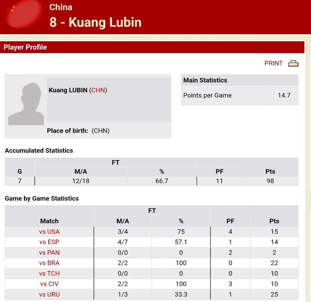 1982 농구 월드컵 중국 팀 득점 1위