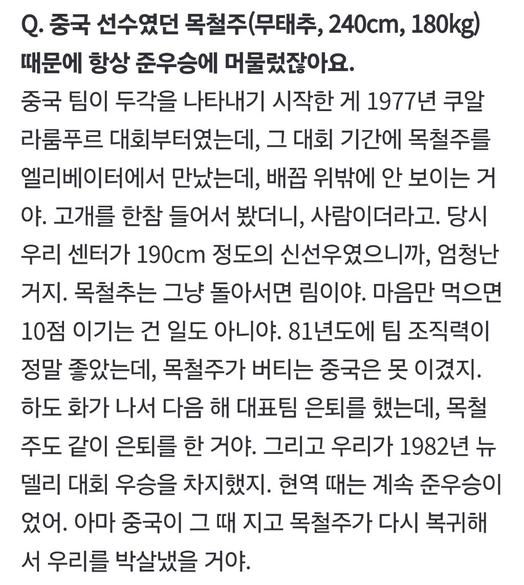 목철주 키는 238로 얘기하지만 이는 과장해서 상대팀의 기를 죽이거나 언론이 화제성을 위해 과장한 것이구요