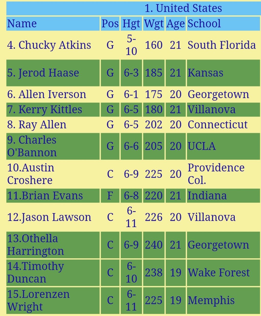 당시 미국이 우승했는데 멤버가 무려