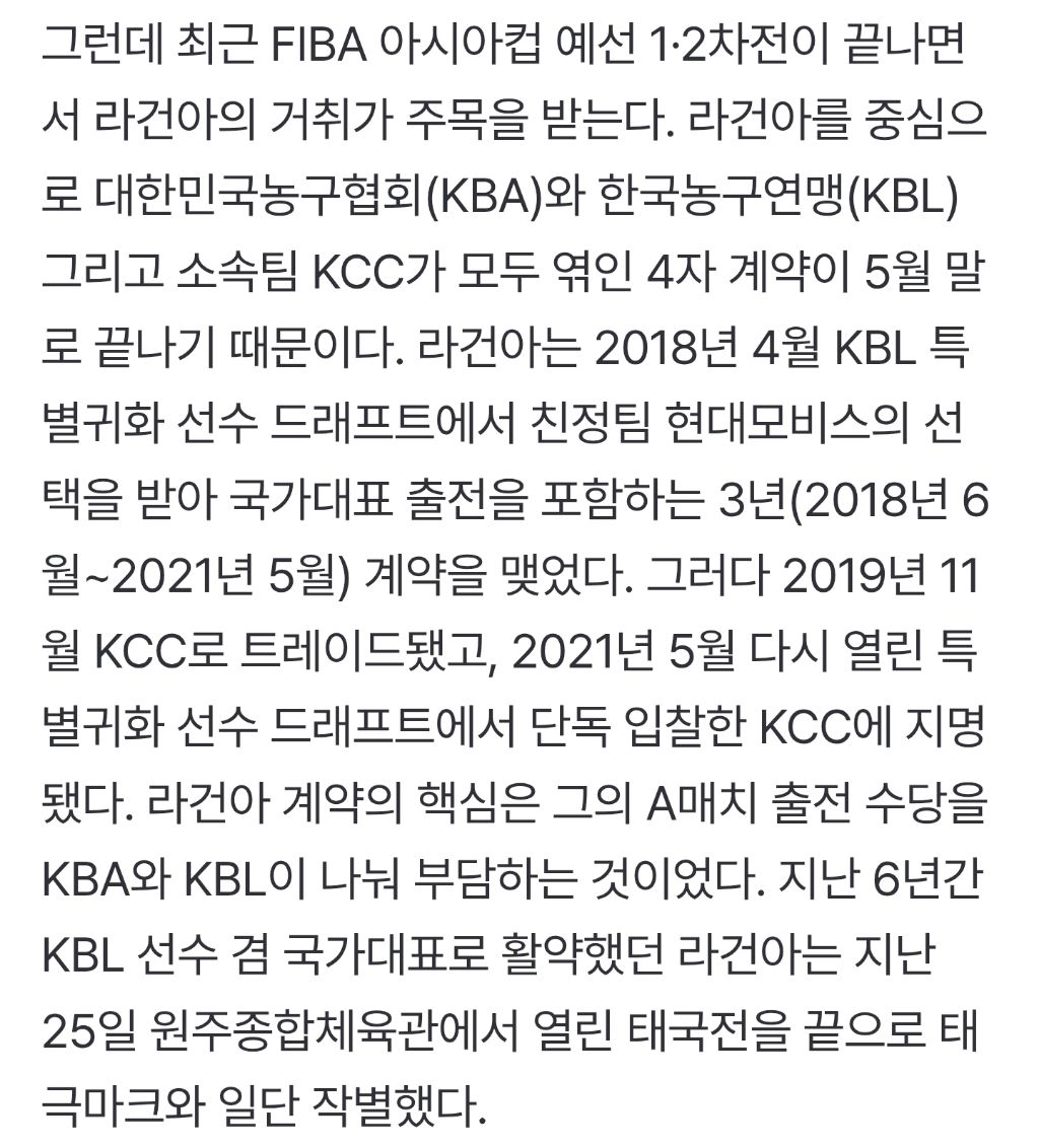 라건아 계약이 만료되는 24년 이전 1년 전부터