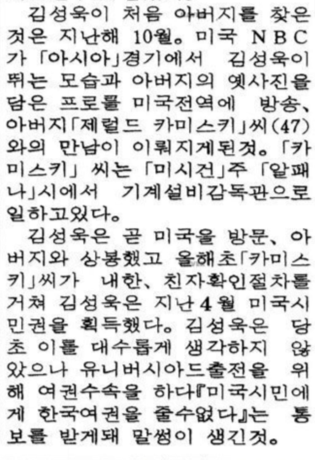 95년 미국 전 당시 11번 선수