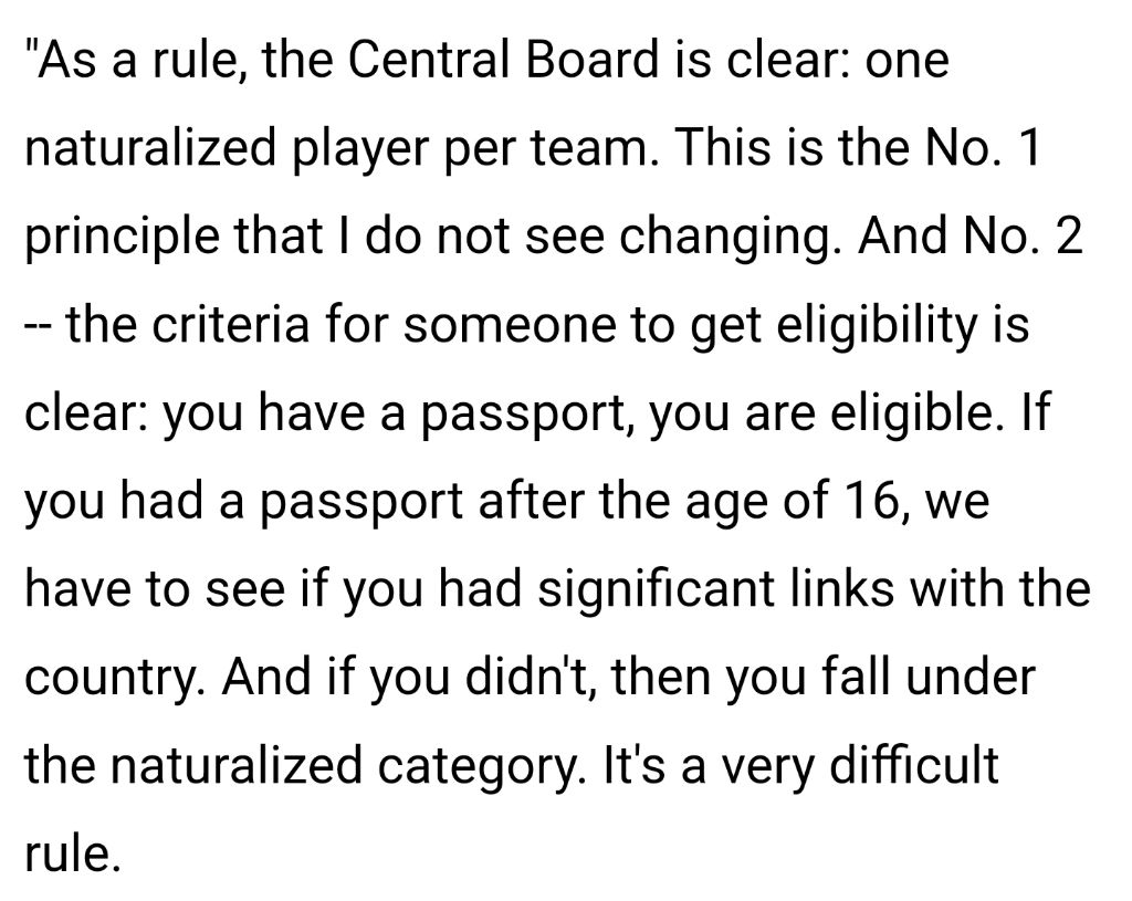 한 명의 귀화 선수 만을 인정하고