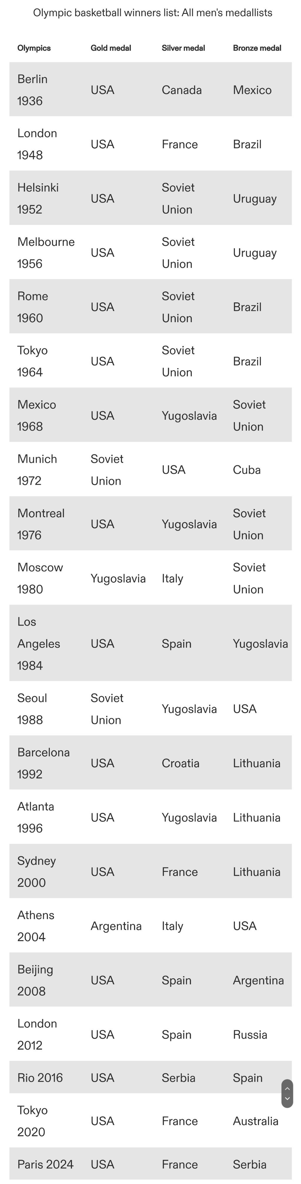 미국이 금메달을 따지 못한 대회는