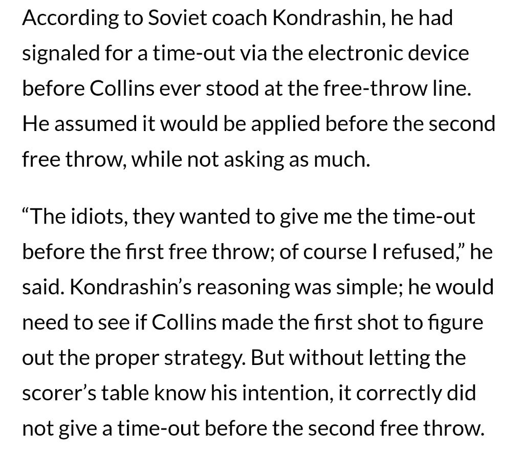 자유투 쏘기 전 소련이 작전 타임 요청했다가 취소