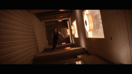 이러한 연출은 무의식이 지배하는 공간을 시각적으로 ‘건축화’하여 관객이 직관적으로 이해할 수 있도록 만든 매우 영화적인 기법입니다.