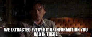 말 그대로 누군가의 꿈속에서 정보를 빼내는 것이며 추출하는 방법은 크게 두 가지인데 우선 꿈 하나를 설계하고, 타깃을 그 꿈에 불러들이면 타깃의 무의식이 수많은 투사체(꿈속의 인물)들을 만들어내는데 그 투사체들에게 대화를 해 정보를 알아내는 방법이 있으나 이는 기본적인 정보밖에 얻어내지 못하기 때문에 상당히 고난도의 정보 추출을 해내려면 복잡한 과정을 거쳐야 합니다.