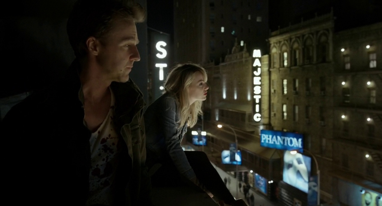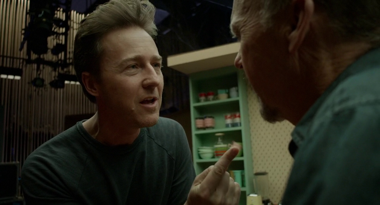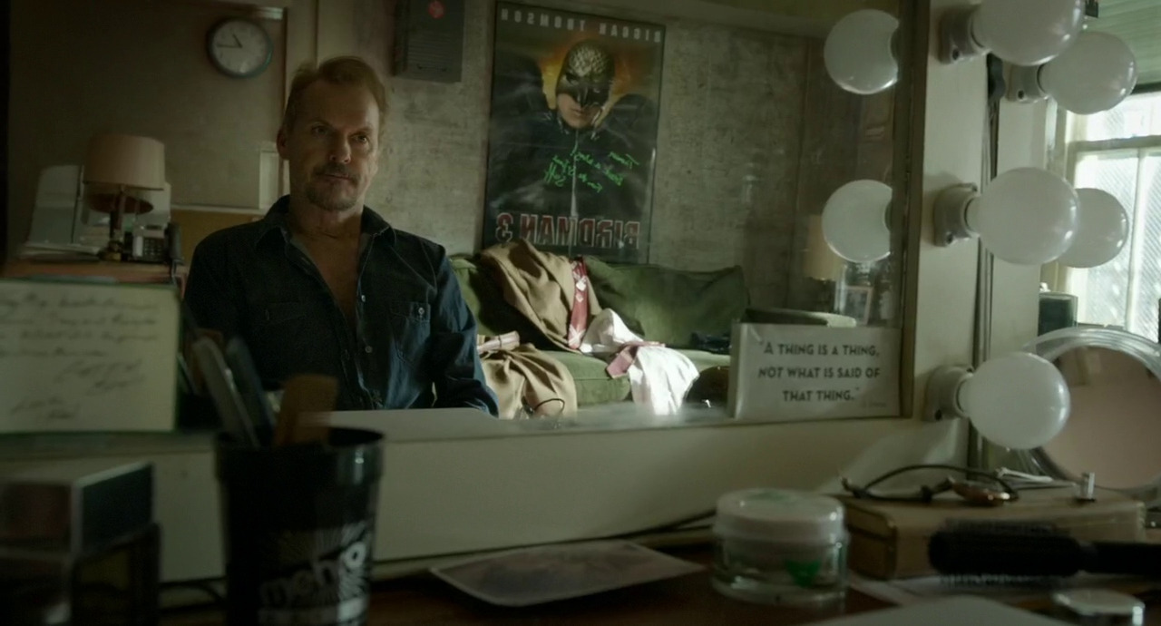 마이클 키튼의 자전적인 성향이 담겨있다고는 하나 현실적인 차이는 있습니다. 작중 <버드맨>은 작품성 측면에선 가치가 없는 상업 영화를 대표하지만 정작 키튼이 실제 배역을 맡은 팀버튼 감독의 <배트맨> 시리즈는 작품성으로도 인정을 받은 우수한 작품이란 차이가 있습니다.