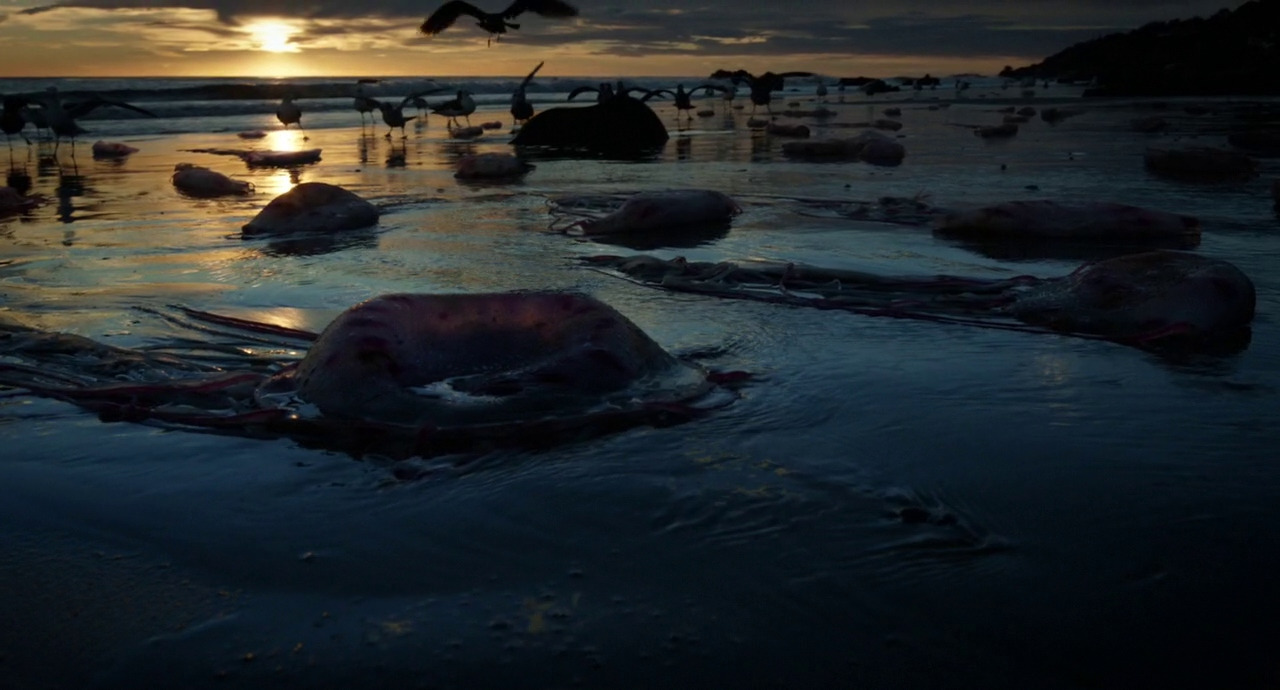 영화가 처음부터 끝까지 원테이크로 진행되다가 리건이 총을 쏜 직후 처음으로 명확하게 컷이 잘린다는 점이 증거로 꼽히며 이때 보이는 로켓은 이카루스의 추락을 상징하고, 해변의 해파리들은 죽음을 암시한다는 것으로 해석됨.